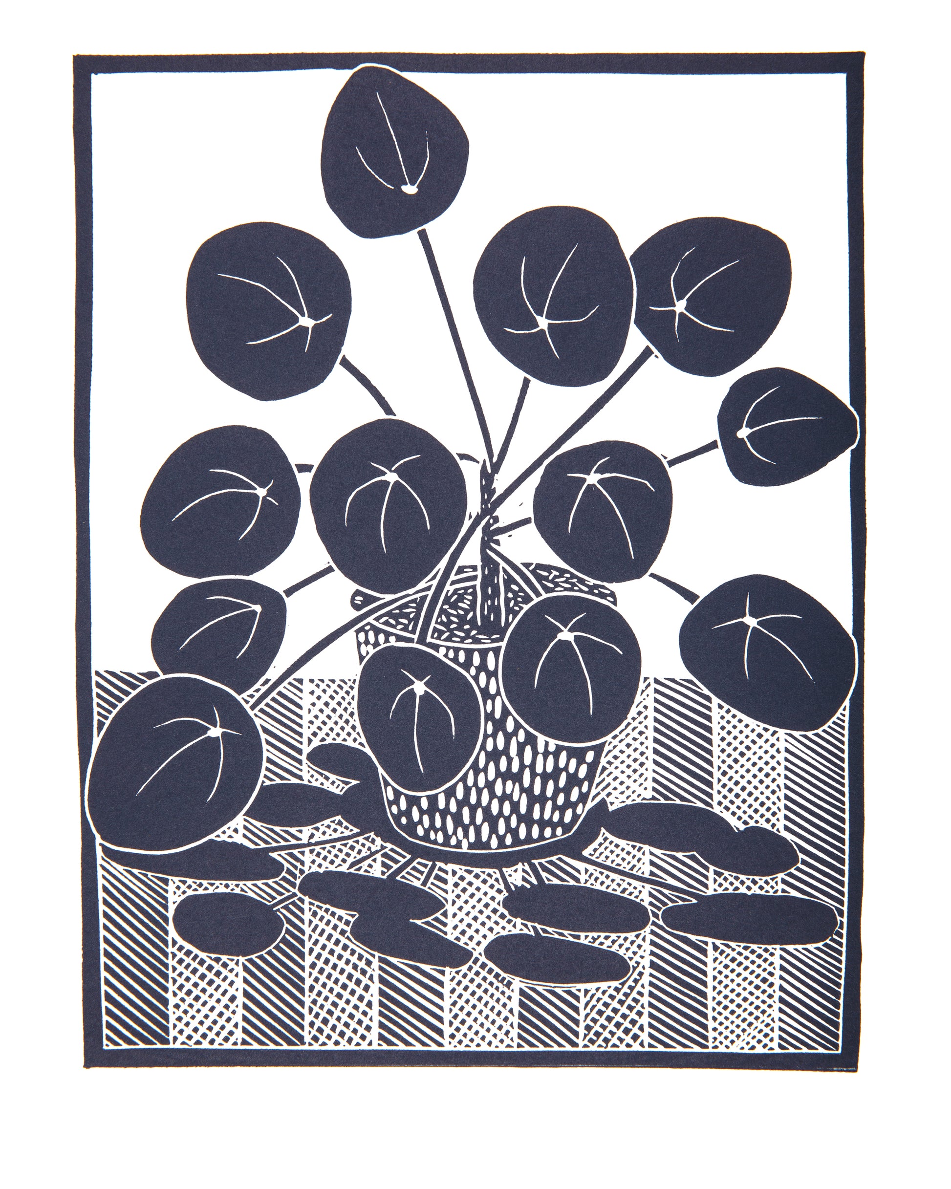 Limited edition lino print of a Chinese money plant. Inspired by several of the Chinese money plants we have around our home as they multiply like crazy!