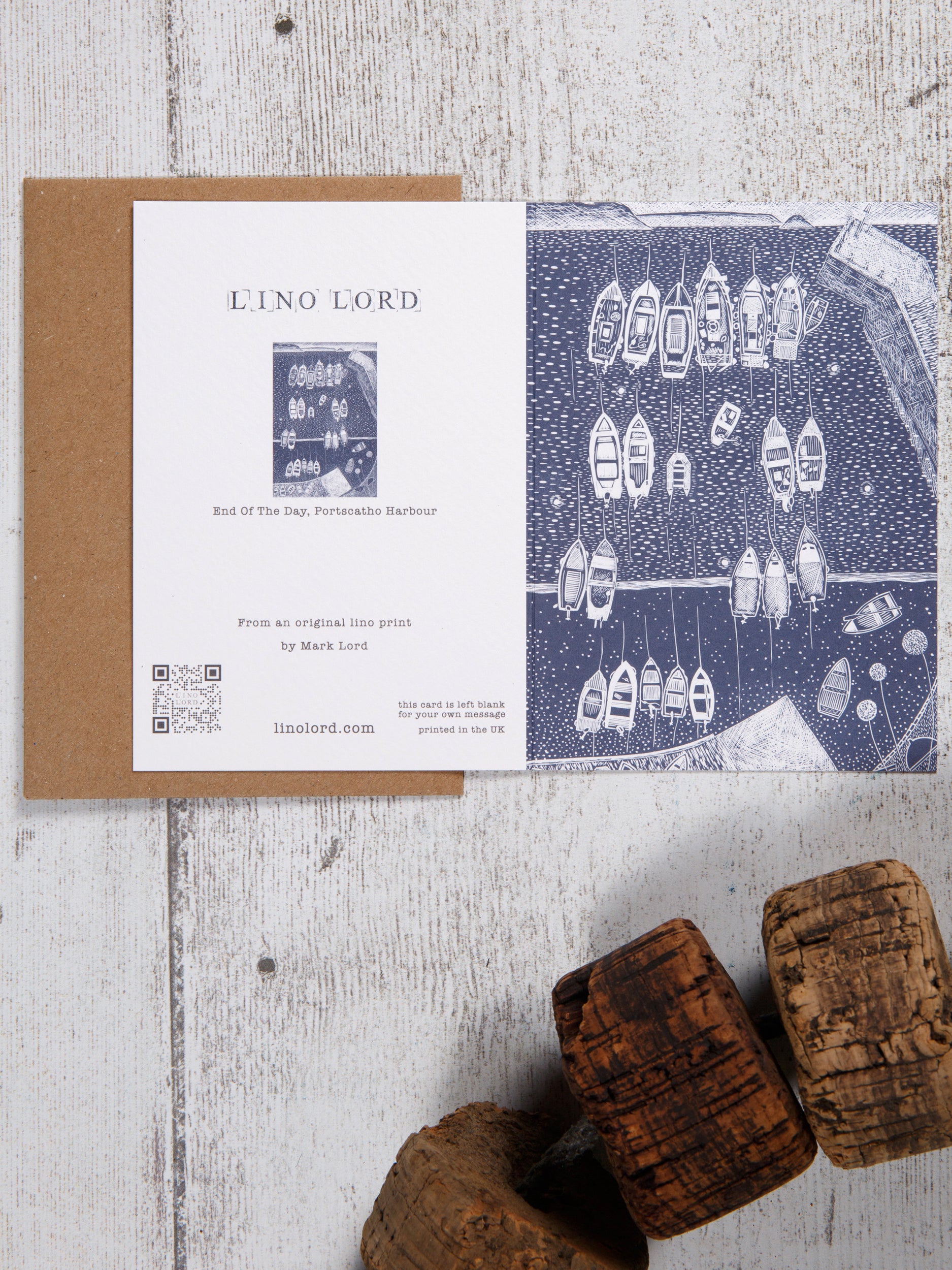 From an original Lino Lord design printed on sustainable Tintoretto Gesso 350gsm card in the UK. The card is left blank inside for your own message and comes with a brown Kraft envelope.
