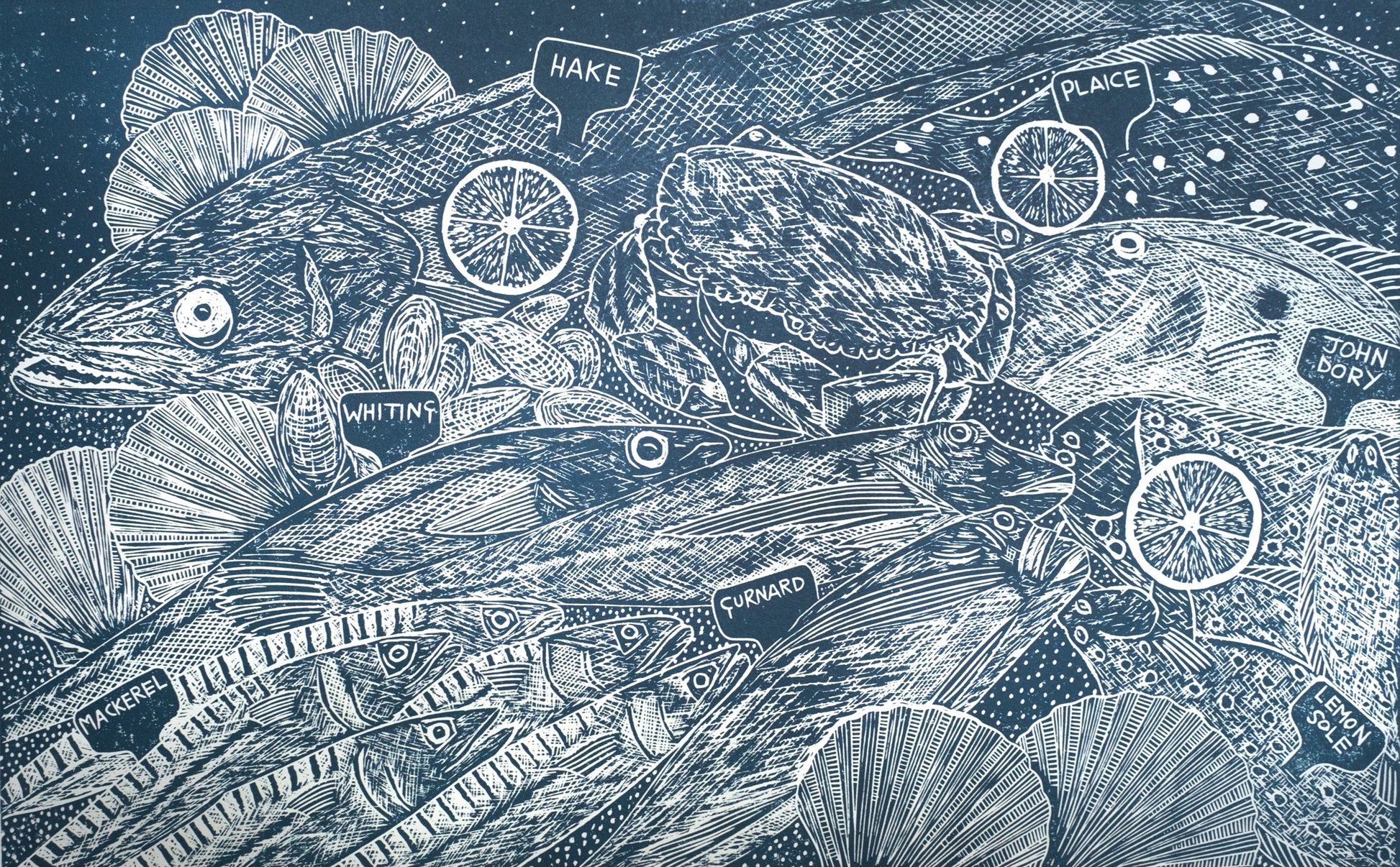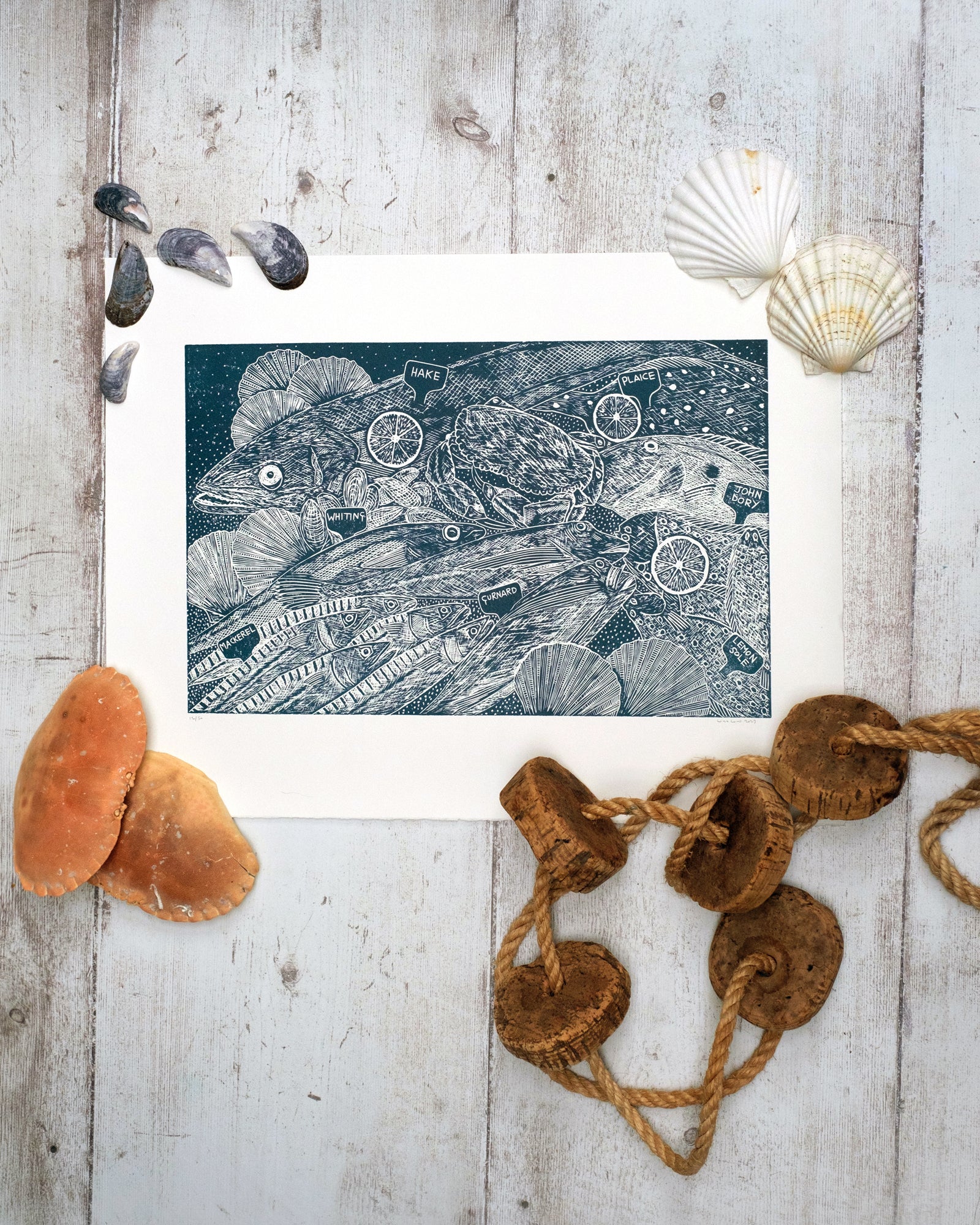 Fish Counter, Curgurrell Farm Shop Limited Edition Lino Print