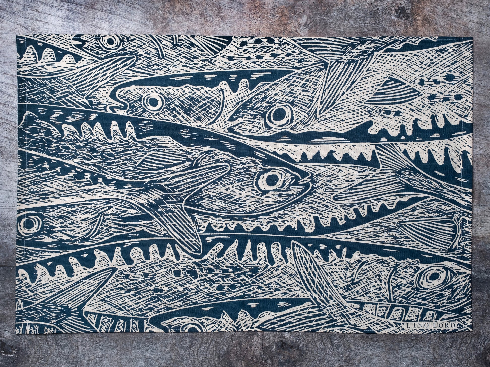 Organic Cotton Tea Towel with my original Heads or Tails Lino print.