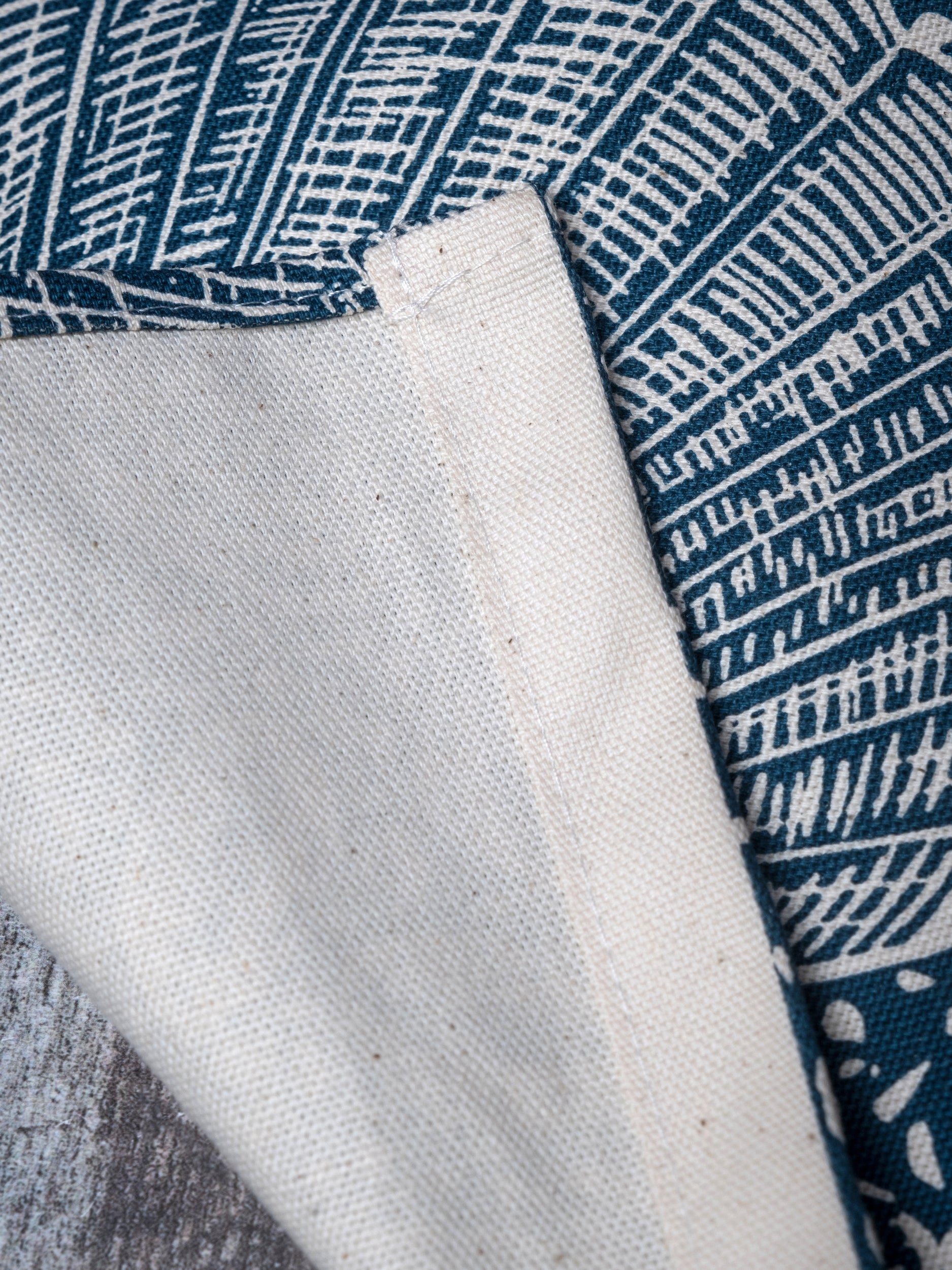 Screen Printed Organic Cotton 220gsm Half Panama Weave, Hemmed on all 4 sides.