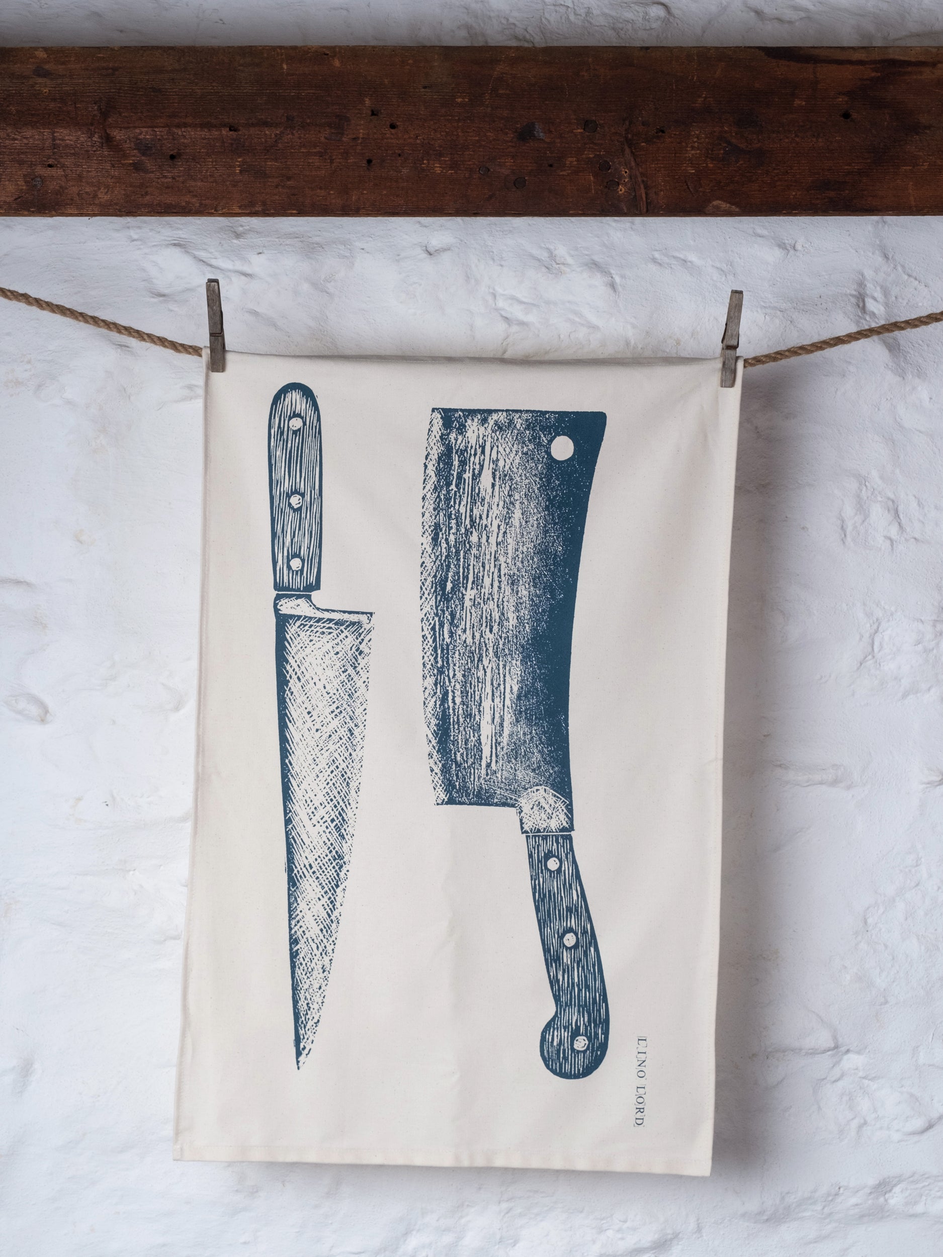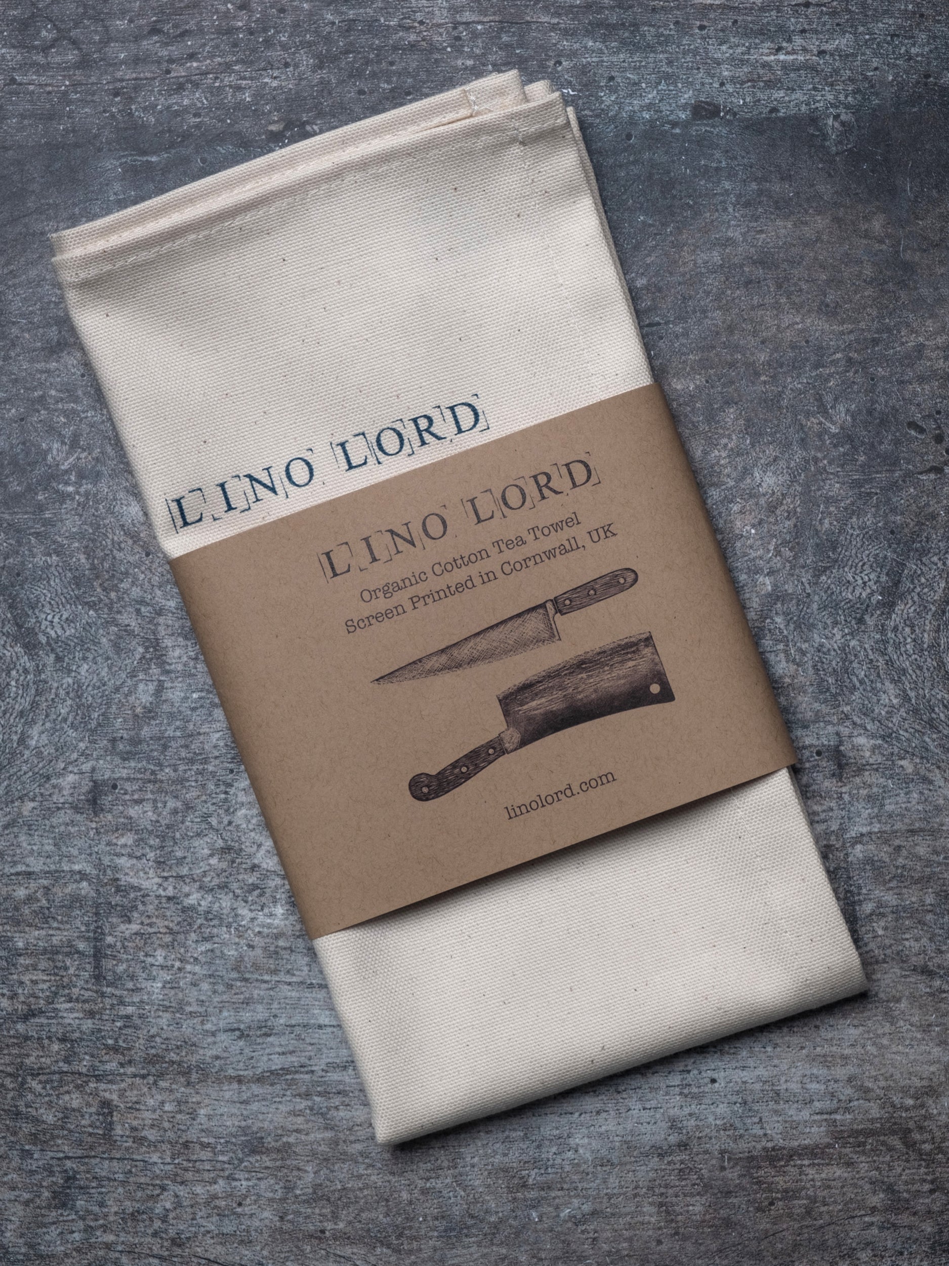 Organic Cotton Tea Towel with my original Knife & Cleaver Lino print.